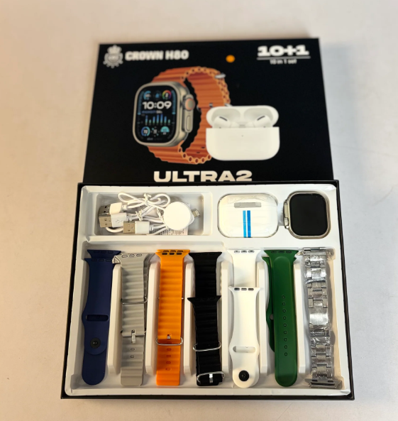Experience versatility and style with the Crown H80 Plus 10-in-1 Bundle, a complete set that includes wireless earbuds, multiple stylish straps, and more. Whether you’re upgrading your accessories or looking for the perfect gift, this bundle offers premium sound quality and sleek personalization in one smart package.
