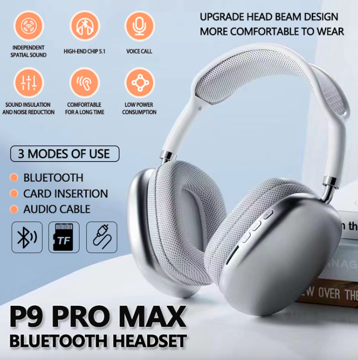 Experience premium audio with the P9 Pro Max Wireless Headphones, designed for music lovers, gamers, and professionals alike. With advanced Bluetooth connectivity, HiFi stereo sound, and immersive noise cancellation, the P9 Pro Max delivers crystal-clear sound quality and deep bass. Its ergonomic, over-ear foldable design ensures maximum comfort for long listening sessions, while the built-in microphone makes hands-free calls easy and reliable. Whether youโre working, traveling, or relaxing, these headphones offer seamless performance and a stylish, modern look.