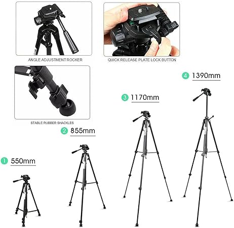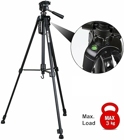 Its 3-way pan head enables smooth tilts and rotations, while the universal screw mount and included mobile holder allow for flexible use with DSLRs, mirrorless cameras, and smartphones. Whether you’re shooting stills or recording videos, this tripod gives you stability and control with every frame.