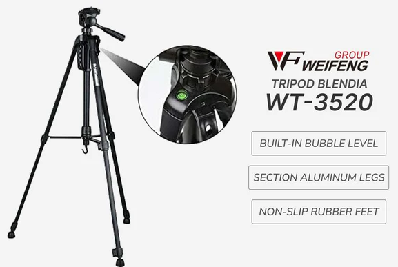 The Weifeng WT-3520/WF-3540 Professional Tripod is the perfect companion for photographers, vloggers, and content creators seeking reliability and versatility. Built from sturdy yet lightweight aluminum, it extends up to 140 cm and folds down compactly for on-the-go shooting.